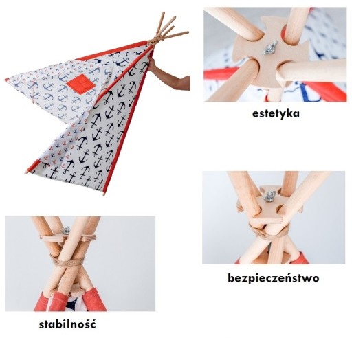Нарешті намет повністю виконує свою функцію, стабілізатор забезпечує дітям безтурботне задоволення, зберігаючи правильну форму тіпі, не згортається під час гри та виглядає естетично.