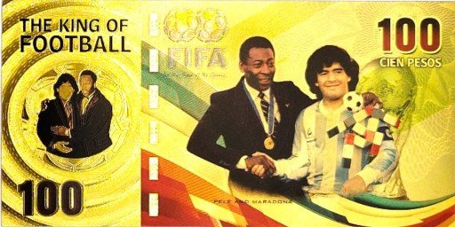 Ця унікальна банкнота була випущена в пам'ять про двох легендарних футболістів - Пеле і Дієго Марадони. Обидва загиблих футболісти назавжди увійшли в історію футболу.