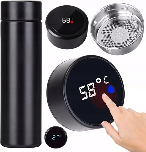 Термокружка - це SMART прилад, оснащений якісним термодатчиком і сенсорним LCD дисплеєм. Завдяки їм можна швидко перевірити температуру напою в термосі. Додатковою функцією є видима на дисплеї крапля, колір якої залежить від температури рідини в чашці.