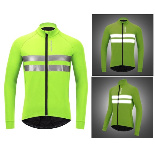 Ця високоякісна трикотажна вітронепроникна велосипедна куртка з поліестеру та флісової підкладки зручна, тепло-, вітронепроникна та дихаюча.