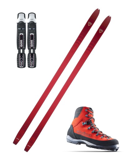 Набір для бігових лиж для бігових лиж, розроблений для позатрасових прогулянок будь-якою місцевістю, особливо в горах із сильним снігом і крижаними трасами.