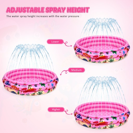 Круглий надувний басейн 2 в 1, виготовлений з преміального ПВХ з високим тиском і зносостійкістю, може використовуватися як килимок для бризок і дитячий басейн.