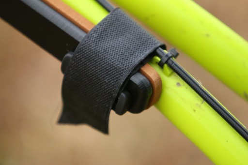 Наші пов’язки на голову дуже легкі, важать менше 370 г. Наголів'я кріпиться до велосипеда в трьох точках - головою за допомогою стрічки, яка кріпиться за допомогою самофіксуючої металевої пряжки на рамі під кермом і двома широкими липучками в дальній частині рами, регулюючи їх по ширині. і будова рами конкретного велосипеда.