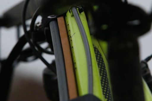 Нам подобаються такі акценти. Вся внутрішня частина оголів’я, тобто та, що стикається з рамою велосипеда, проклеєна густою м’якою піною, яка ефективно захищає його фарбу. Завдяки цьому це майже непорушне, безкомпромісне наголов’я м’яке та делікатне.