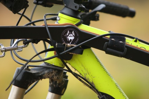 Важливо, що поводок і собака/собаки кріпляться не на пов’язку, а безпосередньо на велосипед. Є багато способів зробити це - хтось обмотує повідець навколо рами, хтось використовує нашийник - ми рекомендуємо прив'язати до рами звичайну мотузку - таку ж, як і зі стандартною спортивною упряжкою для собаки. Наш трос постійно прикріплений до велосипеда, він легкий і м’який, не заважає повсякденному користуванню велосипедом, а прикріпити собаку – це абсолютно не складно.