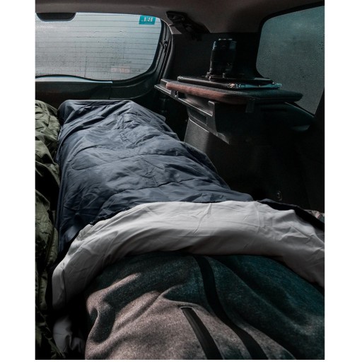 Спальний мішок має постійну ширину, а також капюшон, типовий для спальних мішків-мумій.
