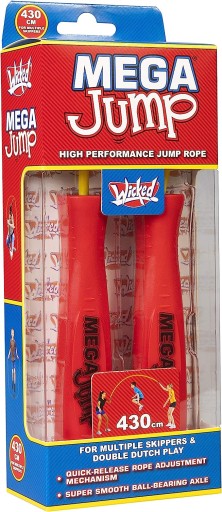 Стрибай як професіонал з новим Wicked Mega Jump! Незалежно від того, чи ви новачок, чи просунутий, надзвичайно плавний поворот є ключовим, тому Mega Jump має високоякісні шарикопідшипники, які забезпечують надзвичайно плавний поворот. Звичайно, спочатку мотузка повинна мати правильну довжину для стрибуна, тому завдяки спеціально розробленому механізму звільнення мотузки дуже легко відрегулювати довжину для кожної людини. Просто зніміть кришку, зніміть затискач і відріжте мотузку за розміром, це так просто! Від простих трюків, таких як X, до складних трюків, таких як TJ, чудові функції Mega Jump допоможуть вам швидко стати професіоналом!