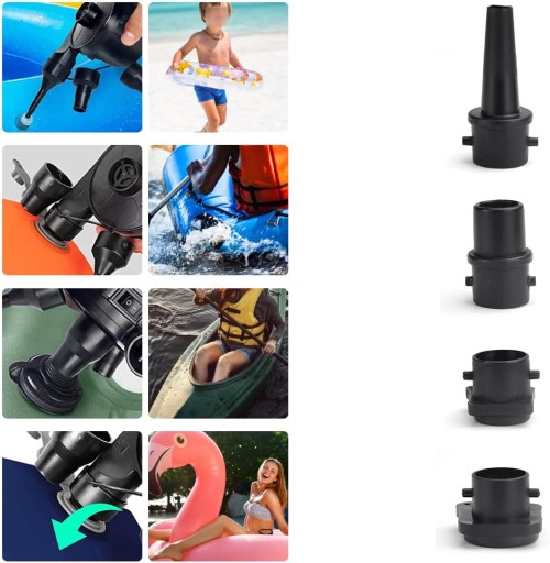 [Багатофункціональний]: 4 типи роз’ємів підходять для електричних надувних машин, надувних машин, звичайних насосів тощо, які широко використовуються в дошках для веслування, надувних човнах, басейнах, плаваючих поїздах, надувних ліжках, каяках тощо.