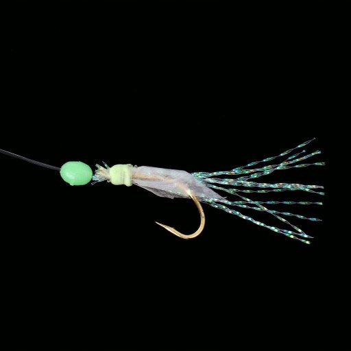 : Виготовлений з високовуглецевої сталі та нейлону. На нижній частині гачка білий бісер. Використовувати в солоній і прісній воді. Яскраво світиться в темряві, щоб залучити велику рибу. Чудова рибалка для любителів риболовлі.