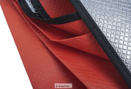 З посиленою тканиною вставкою. Край додатково оброблений скотчем. Рятувальна ковдра має 4 люверси. Вони служать для кращої фіксації. Його можна використовувати як рятувальний брезент, основу намету або для інших цілей. Завдяки покриттю він відбиває тепло тіла і таким чином захищає від переохолодження. Стабільний і універсальний у використанні.
