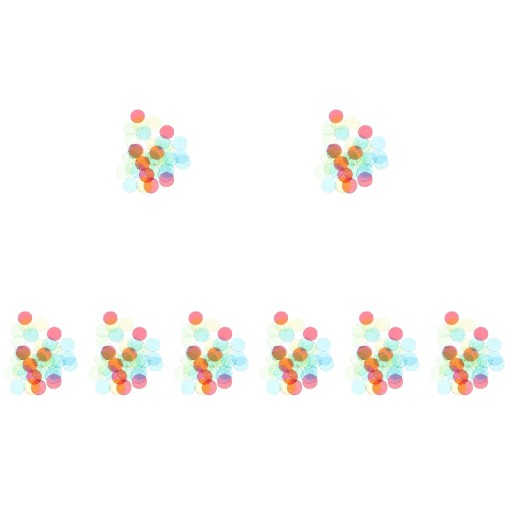 Цей предмет являє собою упаковку з 400 фішок бінго 4 різних кольорів, які використовуються з картками бінго. Прозорий дизайн дозволяє вам знати, які числа були названі, для класних і карнавальних ігор у бінго.
