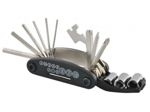 Цей універсальний аксесуар стане найкращим супутником у будь-якій велосипедній подорожі. Велосипедний мультитул використовується для базових налаштувань і ремонту. Він містить цілих 16 найбільш часто використовуваних засобів для підтримки вашого велосипеда в хорошому стані.