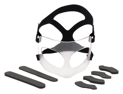 Легкий протектор для обличчя Mueller. Виготовлений із стійкого до розтріскування полікарбонату. Гарної форми, зручно лягає на обличчя. Не обмежує поле зору. М'які губки захищають від травм.