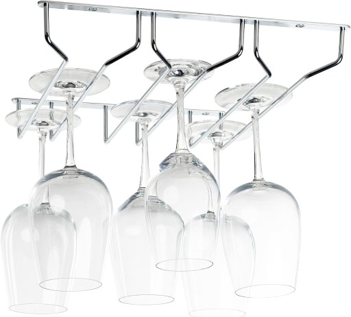 - Компактна полиця: цей легкий тримач для винних келихів можна легко повісити під будь-яку кухонну шафу. Якщо він вам не потрібен, він легко поміститься в будь-якому кухонному ящику. Розміри: полиця підходить під будь-яку кухонну шафу розміром 330 мм х 330 мм. Відстань від основи шафи 55 мм