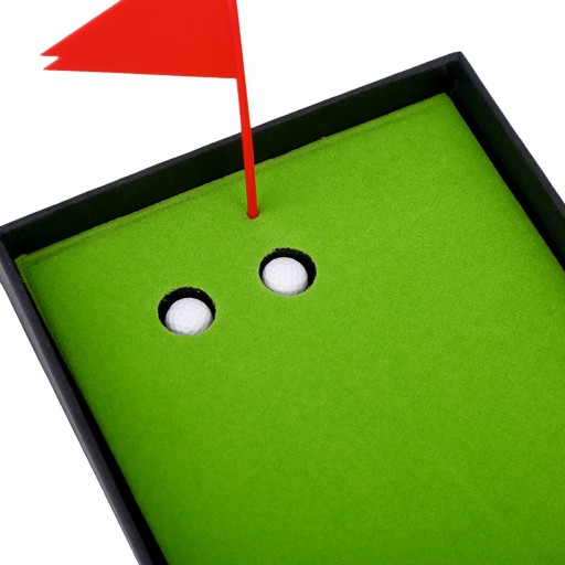 - 3. Поставляється з двома м’ячиками для гольфу, прапорцем і подарунковою коробкою, яка служить місцем для гри в міні-гольф.