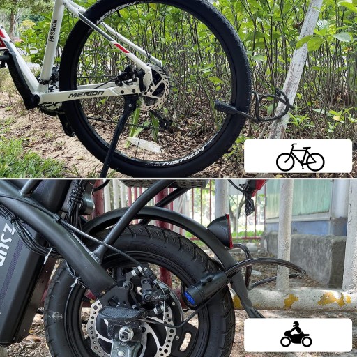 ПРАКТИЧНІСТЬ - Завдяки товщині 1,2 см і довжині до 90 см замок ідеально підходить не тільки для велосипедних поїздок, але і для кріплення мотоцикла, скутера або коляски.