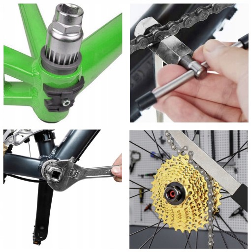 - ОБОВ'ЯЗКОВЕ СКЛАДАННЯ ВЕЛОСИПЕДИСТА - весь набір містить 7 основних інструментів, необхідних для швидкого ремонту або обслуговування велосипеда. Ланцюговий переривник/ламач, ключ для центрування спиць і коліс, ключ вільного ходу, ключ для знімання кривошипа, ключ для осі каретки на косинці, бич для відкручування касет.