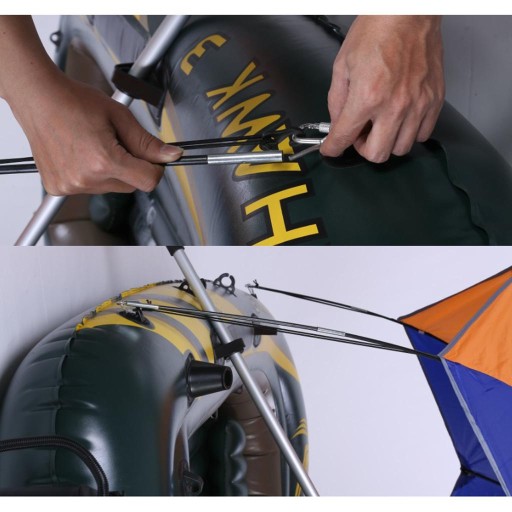 Стабільний і міцний надувний тент для байдарки: використовуйте D-подібні пряжки, щоб прикріпити тент до корпусу човна, який є міцним і стабільним, добре захищаючи від сонця та дощу. Надувний тент для байдарки