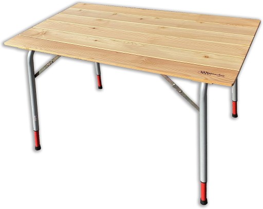 - Розкладний стіл з телескопічними ніжками 100х60 см. Стільниця з масиву модрини. Регулювання висоти від 66 см до 83 см.