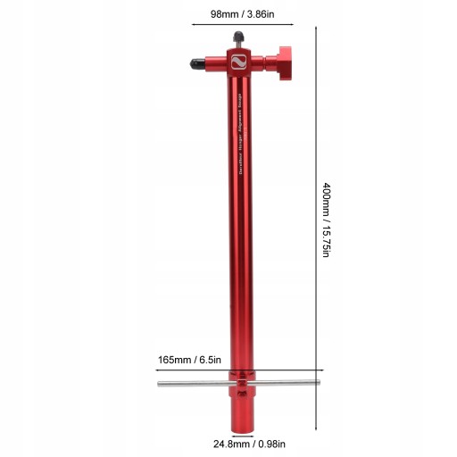 2. Дотримуючись інструкцій: безпосередньо вкрутіть інструмент у підвіску для ланцюгового підйому. На паличці є індикатор для вимірювання відстані до колеса. Потім, коли коліщатко обертає манометр на 90°, 180°, 270° і 360°, зверніть увагу на різницю в виміряних значеннях. Вирівняйте підвіску перемикача, натиснувши на важіль інструменту. Ви можете негайно перевірити результати.