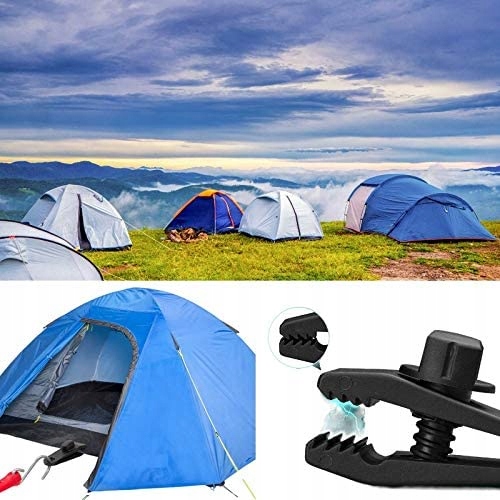 - Затискачі для брезенту ідеально підходять для відкритих кемпінгових наметів, тентів, караванів, парасольок, брезентів, тентів, чохлів для човнів, чохлів для барбекю, басейнів, навісів або будь-якого тканинного покриття, яке потребує додаткових опорних точок.