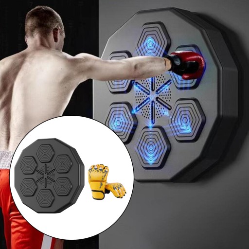 [Боксерський майданчик]: обладнання для тренування боксу з рукавичками просте у використанні. Розмір: боксерська мішень 44 см x 44 см/17,32" x 17,32"; Рукавички 24 см x 13 см x 5 см/9,45 дюйма x 5,12 дюйма x 1,97 дюйма (загальні для дорослих і дітей). Світло RGB і не соромтеся слухати улюблену музику.
