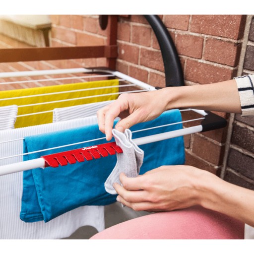 У балконній сушарці Vileda Sunset є зручний тримач для дрібних предметів, на який можна повісити дрібні предмети, наприклад, шкарпетки або нижню білизну.
