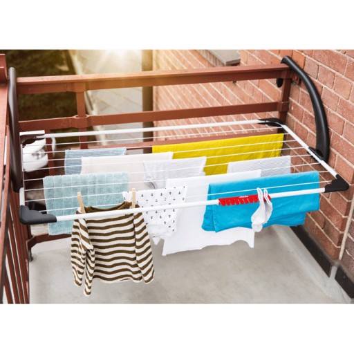 Щоб зібрати балконну сушарку Vileda Sunset, просто відрегулюйте кронштейни та повісьте її. Це може бути на балконі або навіть в квартирі біля вікна.