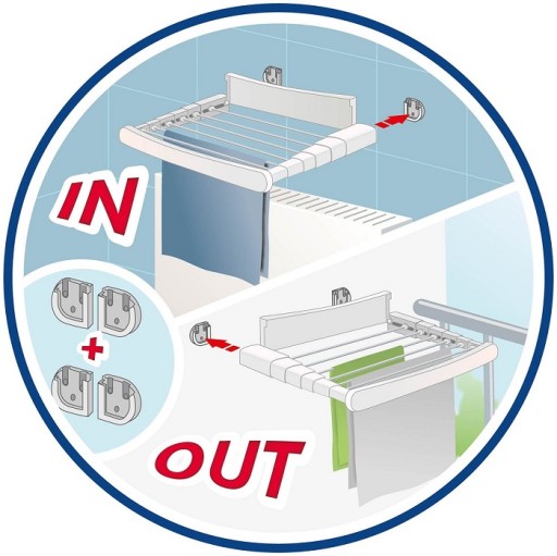 Підвісна сушильна машина Vileda оснащена двома наборами монтажних кронштейнів, які можна розмістити, наприклад, на стіні у ванній кімнаті та на балконі.