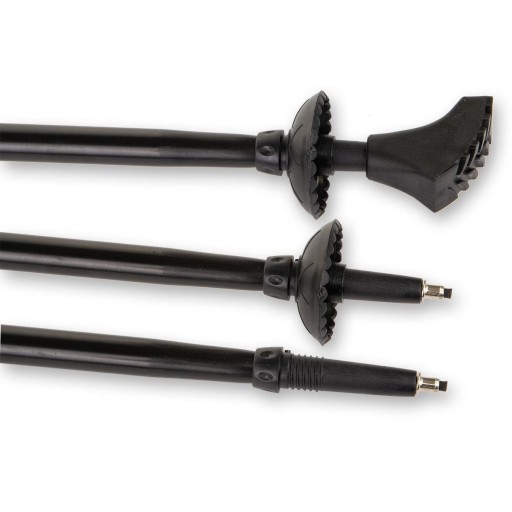 Наконечники «черевики» - вони поглинають і обмежують звук постукування по поверхні, захищають наконечник і обмежують його стирання. Добре працюють на твердих гладких поверхнях (асфальт, бетон, тротуар). Навіть взимку на крижаних поверхнях стабільність вам забезпечена. Гумовий матеріал стійкий до пошкоджень і добре працює на довгих маршрутах. «Тарелчасті» наконечники – вони запобігають надто глибокому занурюванню палиць у м’які болотні поверхні, наприклад, бруд або пісок. У комплект входять 2 нейлонові ремені для рук, регульовані за допомогою застібки на липучці і знімні, з системою кріплення. Щоб зняти рукавичку, достатньо лише одного натискання