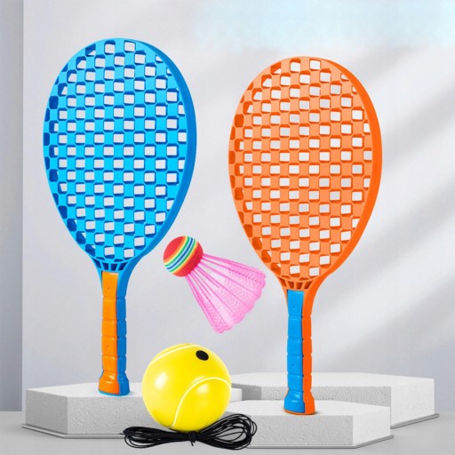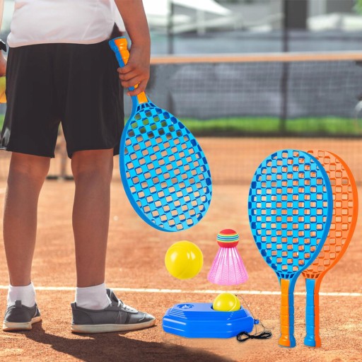2 тенісні ракетки, 1 основа, 1 бадмінтон, 1 тенісний м'яч, 1 тенісний м'яч з еластичною струною