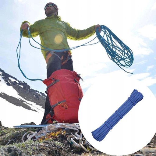 Вміст упаковки: альпіністська мотузка з поліефірного волокна товщиною 6 мм з міцністю на розрив 30 г на метр: 5 кН (500 кг) Довжина: 10 м, 15 м, 20 м, 30 м, 40 м, 50 м.