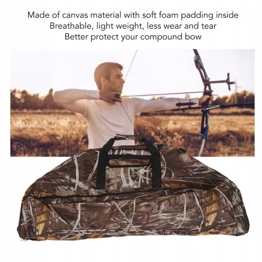 1. МАТЕРІАЛ ПОЛОТНЯ: складна сумка для лука виготовлена з полотна з м’якою пінопластовою підкладкою всередині, дихаюча, легка та непроста в носінні, краще захищає складний лук.