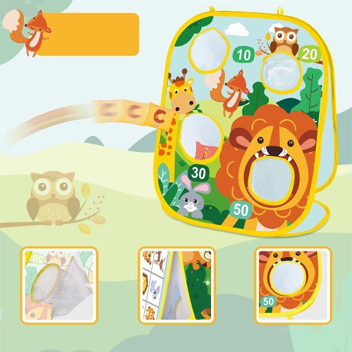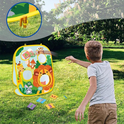 Включає мішок для зберігання, диск мішка з піском, цвяхи та липкі кульки, підходить для дітей старше трьох років.