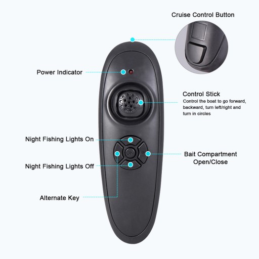 Автоматична корекція маршруту: човен з приманкою має систему автоматичного балансування. Коли човен відхиляється через сильний вітер і хвилі під час руху, він автоматично виправляє й підтримує прямий рух човна.