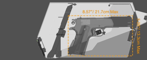 Сейфи непомітно встановлюються під столиками в спальні, продуктовими прилавками та будь-де, де вам потрібно мати вогнепальну зброю під рукою. Він також тримає зброю в недоступному для дітей та підлітків місці.
