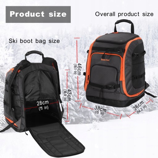 【Великий об’єм 50 л】Сумка для лижних черевиків SoarOwl Об’єм 50 літрів, її розміри 18,1 x 15 x 14,2 дюйма (46*38*36 см) можуть зберігати чоловічі черевики США розміром до 12,5. Вона досить велика. для зберігання черевиків, шоломів, окулярів, одягу, цінних речей тощо. Якщо у вас є багато обладнання для зберігання та транспортування, ця сумка точно впорається зі своєю роботою.