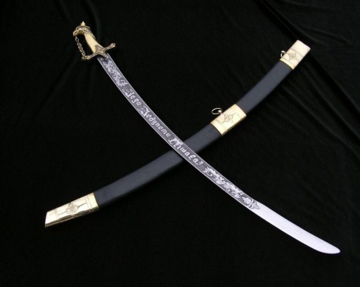 Шабля не заточена і не пристосована для заточування (не підходить для фехтування). Клинок (голова) виготовлений з полірованої толеданської сталі. Полірування виконується до отримання однорідної, матової, гладкої структури. Ми рекомендуємо час від часу змащувати лезо та піхви дуже тонким шаром оливкової олії або іншого мастила (це допоможе зберегти високу якість продукту).