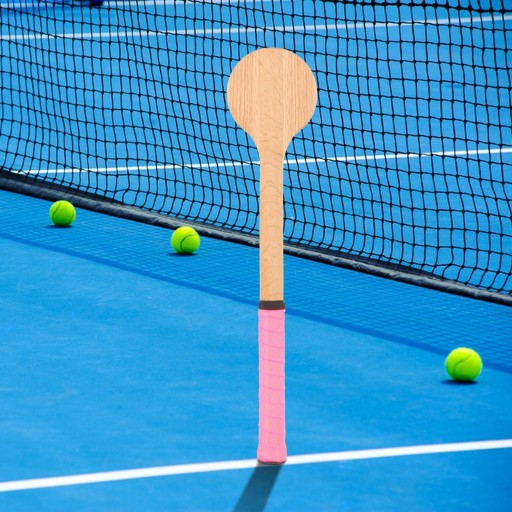 ІДЕАЛЬНИЙ ДИЗАЙН: цей дерев’яний тенісний тренажер ручної роботи виглядає як ложка з ручкою для тенісу на ручці для розвитку юних гравців у турі.