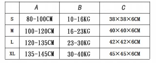 A: Відповідна висота. B: відповідна вага. C: Розмір одягу.