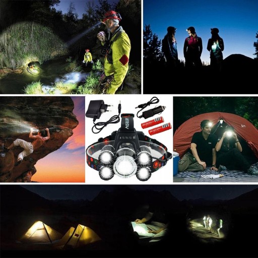Надпотужна світлодіодна фара HEADLIGHT, оснащена дуже потужними 5 світлодіодами CREE XM-L T6 з радіусом дії до 500 метрів, що живляться від двох потужних батарей 18650 4800 мАг 3,7 В.