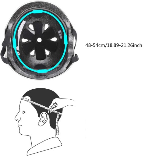Розмір шолома можна регулювати, обертання регулятора за годинниковою стрілкою зменшує розмір, а обертання проти годинникової стрілки збільшує розмір, окружність голови 46-54 див.