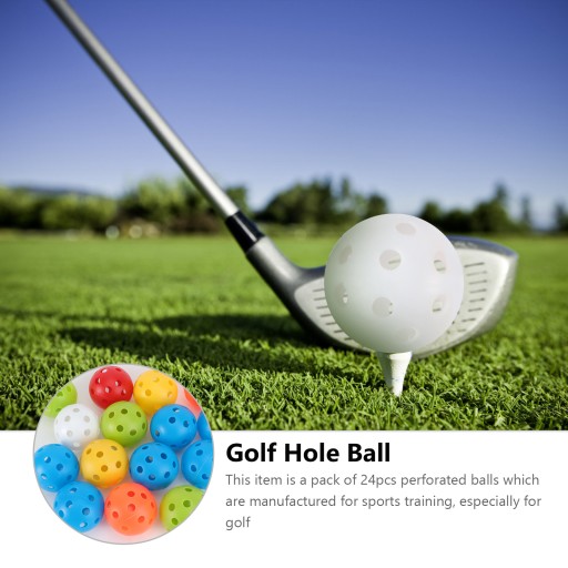 Цей предмет являє собою набір з 24 штук перфорованих м'ячів, які призначені для спортивних тренувань, особливо для гольфу. Легка конструкція забезпечує безпеку як всередині, так і зовні. Виготовлені з матеріалів найвищої якості, вони мають міцну конструкцію для тривалого використання.