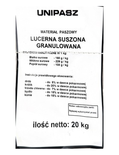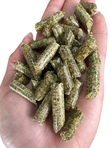 Сушена люцерна для коней у формі гранул містить якісний білок, що складається з екзогенних амінокислот. Його цінність обмежена великою кількістю лізину і метіоніну, тобто незамінних амінокислот. Цими амінокислотами можна забезпечити коней, згодовуючи лише дуже якісний корм. Біодоступність білка люцерни коливається в межах 65-85%. Завдяки цьому він дуже добре підтримує процес нарощування та регенерації м'язової тканини. Гранульована люцерна для коней містить корисні жирні кислоти та ефірні олії.