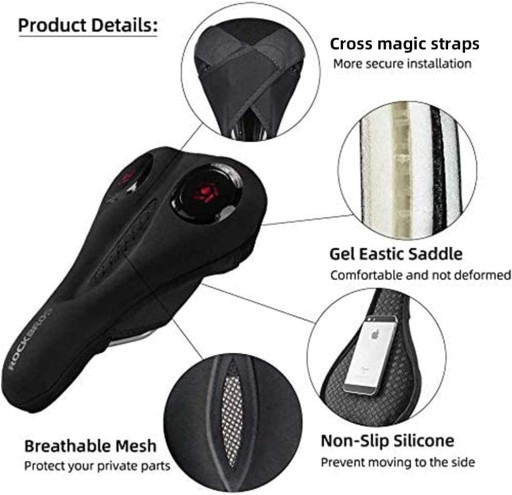 - 【КОМФОРТ ТА ЗАХИСТ】Комфортний чохол для велосипедного сидіння ROCKBROS покритий високощільною піною з ефектом пам’яті та густим гелем. Наш чохол для сідла м’який і зручний, може пом’якшувати удари, ефективно знімати біль і краще захищати вашу сідницю.