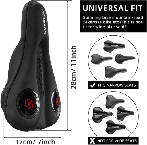 - 【ЧУДОВЕ ЗАСТОСУВАННЯ】 Цей універсальний чохол для велосипедного сидіння (розмір: 28*17 см) підходить для більшості вузьких велосипедних сидінь, таких як гірський велосипед, шосейний велосипед, спінінг, велотренажер тощо.
