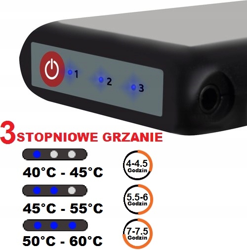 У комплект входять акумулятори ємністю 4500 мАг. З 3-ступінчастим регулюванням тепла 1,2,3 (низький, середній, високий рівень нагріву).