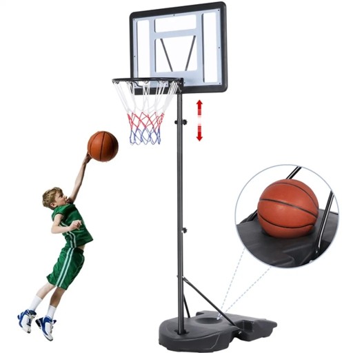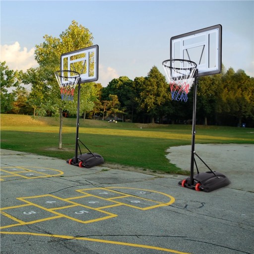 Система баскетбольного кільця Yaheetech з регульованою висотою забезпечує професійний спосіб потренуватися в баскетбольних навичках і провести час з сім'єю та друзями. Він має велику важку основу, яку можна наповнити водою або піском, щоб зробити підставку більш стабільною та безпечною, а два колеса забезпечують хорошу мобільність підставки. Завдяки 6 парам отворів для регулювання висоти телескопічну палицю можна легко регулювати з 5 футів/7 футів/86,5 дюймів. Із кроком 4,3 дюйма. Коли наша система баскетбольного кільця не використовується або не транспортується, її можна розібрати на плоскі частини, що займає дуже мало місця у вашому гаражі чи вантажівці.