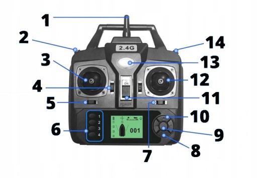 На РК-дисплеї пульта дистанційного керування відображається кілька даних, таких як заряд акумулятора, відстань, компас, положення.