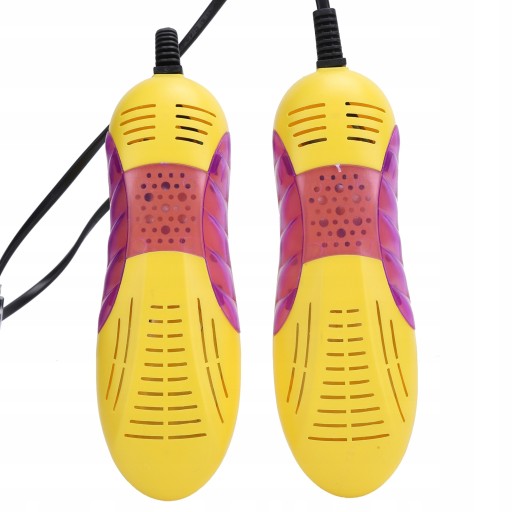 Специфікація: Тип предмета: сушарка для взуття Матеріал: пластик, електронні частини Вага: прибл. 160 г / 5,6 унцій Основний колір: жовтий Потужність: 10 Вт Напруга: 220 В 50 Гц Час нагрівання: 3-5 хвилин Розмір: прибл. 16x5,5x3 см / 6,3x2,2x1,2 дюйма Довжина кабелю: прибл. 1,2 м / 3,9 футів: для любителів спорту зазвичай виникає багато проблем. Після занять спортом взуття має властивість намокати. У дощових регіонах взуття, як правило, намокає через нудний дощ. Наша машина для чищення взуття може допомогти вам вирішити вищезазначені проблеми. Чистка для взуття видаляє вологу з взуття та оснащена фіолетовим очисним пристроєм. Цей продукт дуже підходить для повсякденного сімейного життя. Варто придбати! Список пакетів: 1 сушарка для взуття